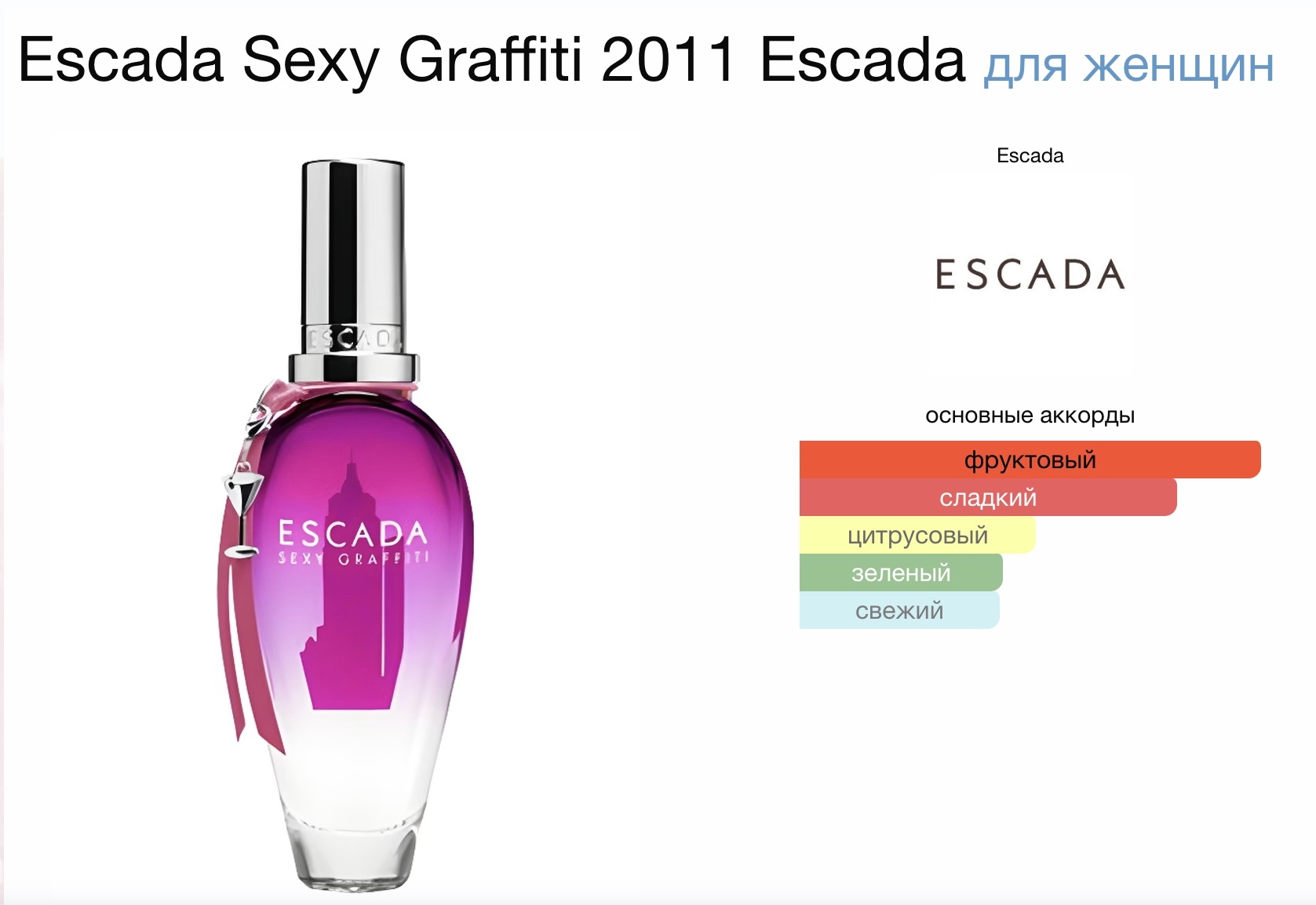 Escada Sexy Graffiti 2011 Escada — это аромат для женщин, он принадлежит к группе цветочные фруктовые.