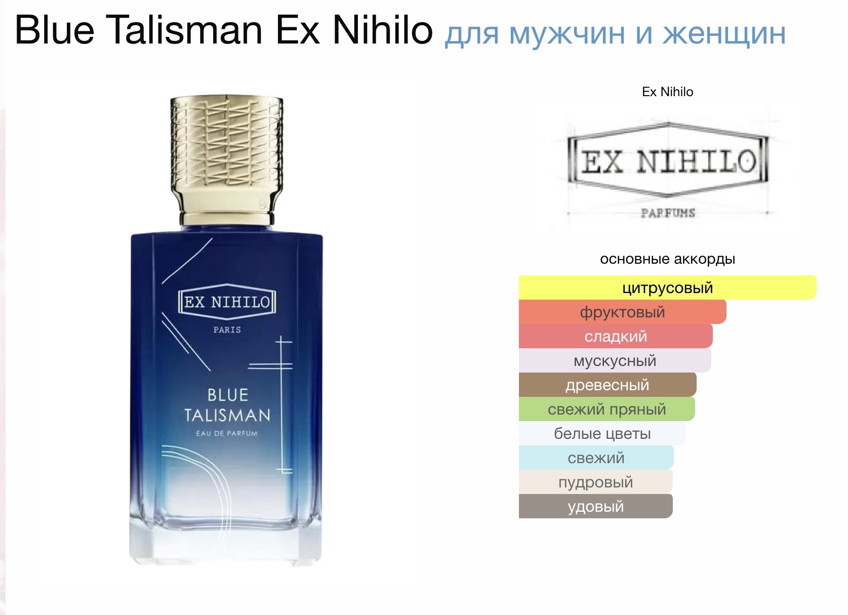 Blue Talisman Ex Nihilo — это аромат для мужчин и женщин.