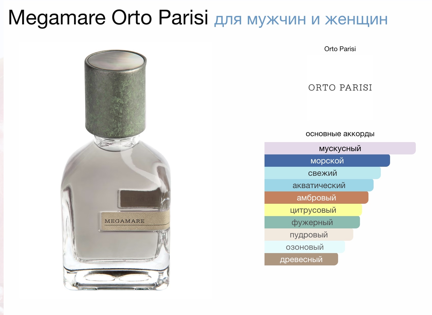 Megamare Orto Parisi — это аромат для мужчин и женщин, он принадлежит к группе фужерные водяные.
