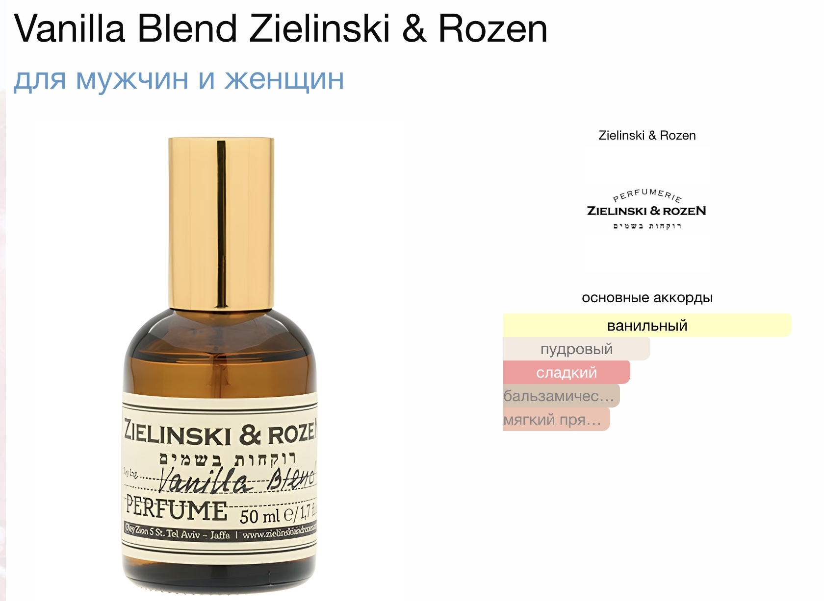 Vanilla Blend Zielinski & Rozen — это аромат для мужчин и женщин, он принадлежит к группе восточные гурманские.